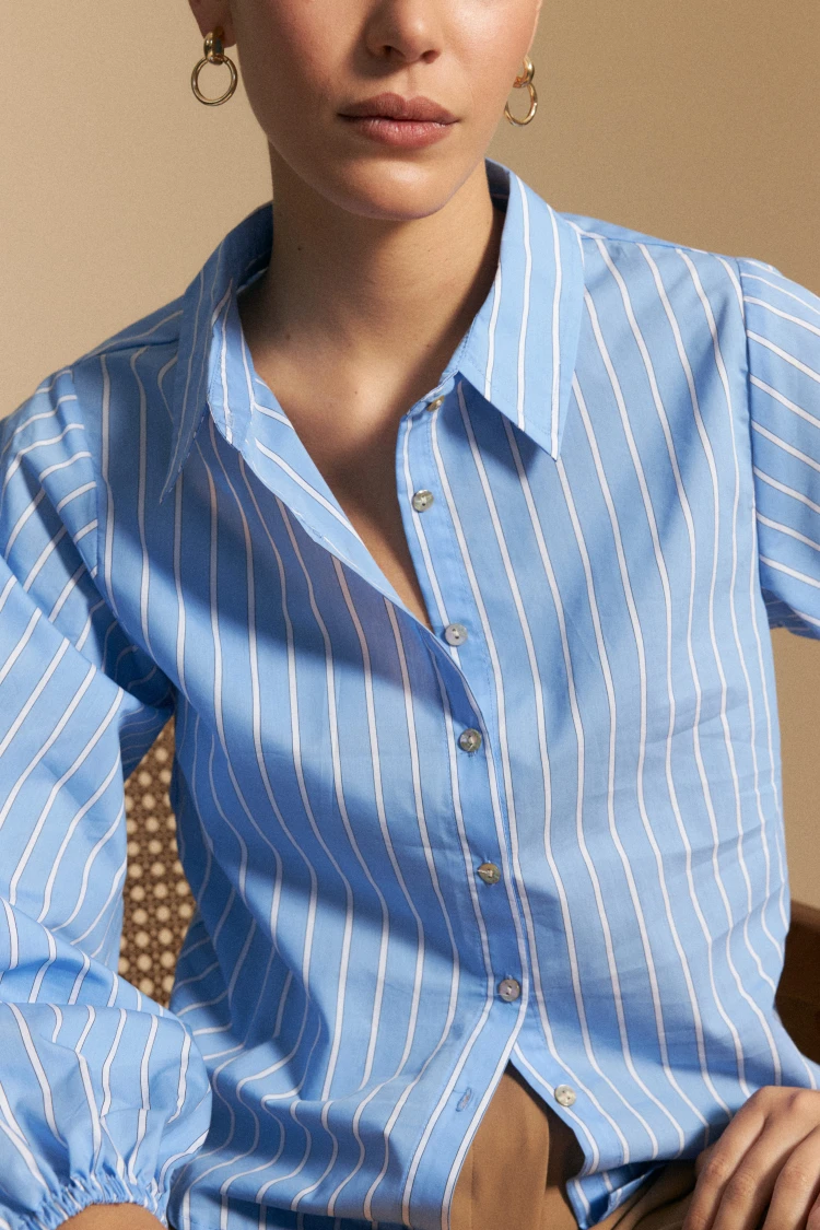 Camisa a rayas de manga larga entallada en la cintura, diseñada para definir la silueta con un calce prolijo y femenino. Presenta puños elastizados, un detalle que aporta comodidad y un acabado cuidado, manteniendo una estética elegante. Las rayas refuerzan su impronta clásica y vigente, convirtiéndola en una prenda sofisticada y atemporal, ideal para acompañar looks formales o estilismos más pulidos del día a día.