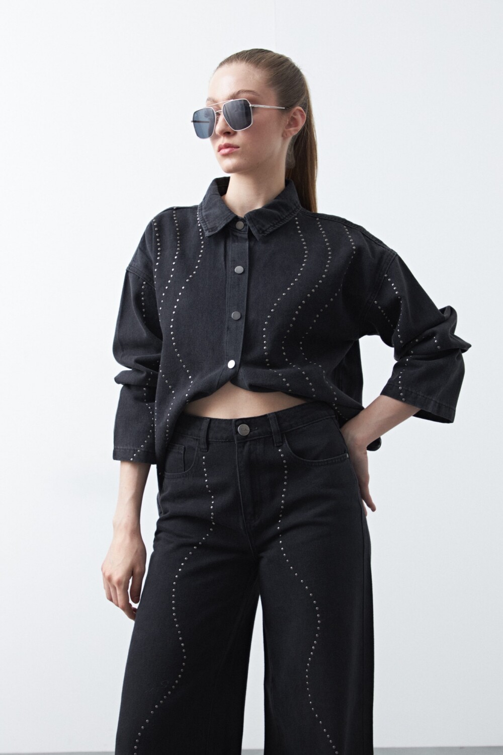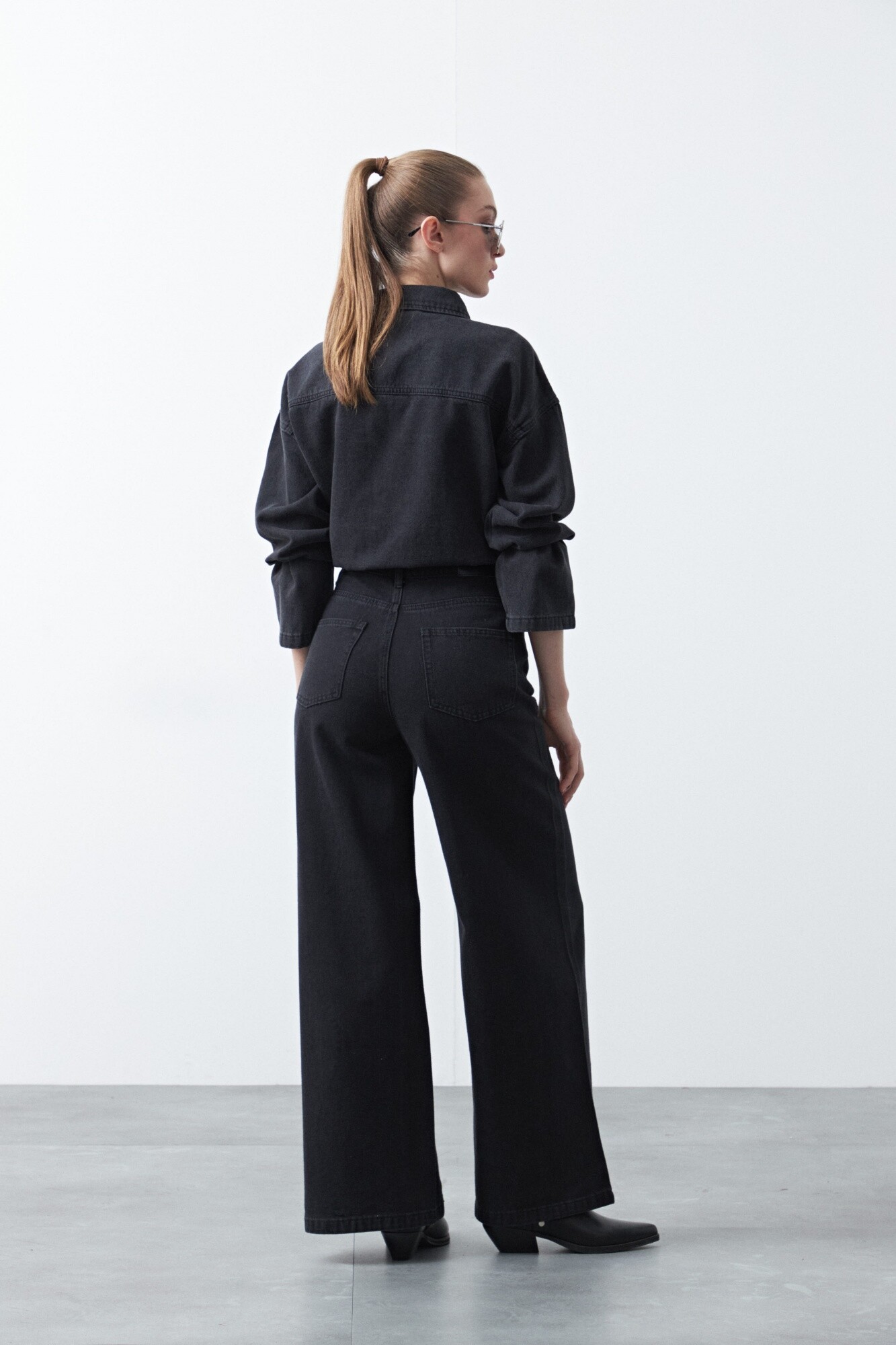 Jean wide leg de silueta amplia y caída fluida, diseñado para estilizar la figura con un fit relajado que acompaña el movimiento sin perder estructura. Presenta detalle de tachas aplicadas que recorren el diseño y aportan un diferencial sutil pero con carácter. La confección en denim de algodón brinda firmeza y comodidad, logrando un calce que se adapta muy bien al cuerpo y resulta clave para elevar cualquier look, tanto en outfits urbanos como en propuestas más arregladas. Un básico en tendencia que suma personalidad al estilismo diario.