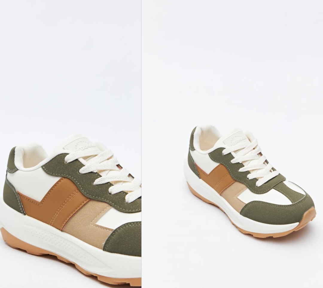 La Bliss es esa zapatilla que te levanta cualquier look sin esfuerzo. Con un diseño moderno y deportivo, combina tonos neutros como blanco, verde oliva y detalles en camel que la hacen súper versátil y fácil de usar todos los días.